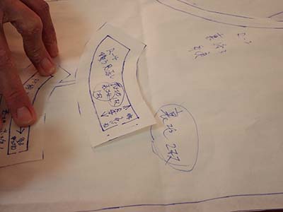 数年ぶりにやりたいことに出会って、どうしてもメンズ服作りを始めたい40代のFさま。先日の体験レッスンでパターンのトレース(抜き取り)方法をご説明しましたので、ご自宅で頑張ってチャレンジしていただき、きれいに出来上がっておりました。本日のレッスンはパターンチェック、カット、裁断と進めていきます