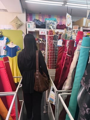いざ、日暮里繊維街でイメージの形に近いワンピースの型紙と生地を探してみよう!と散策を始めましたが…なんと、私のうっかりで日曜日はお休みのお店が多く、思う様な生地を見つけることが出来ませんでした。申し訳ありませんでした…。その中でも開いているお店を見たり、場所を御徒町のユザワヤさんへ移し、おおよそ生地の目星をつけました。